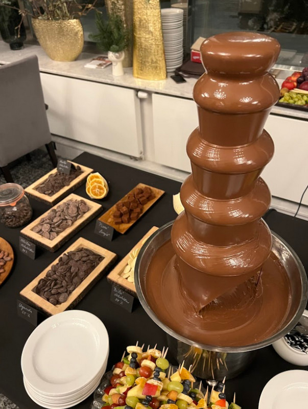 - Čokoláda: není součástí základní ceny, kvalitní čokoládu přímo pro fontány si můžete vybrat na našem e-shopu, nebo zakoupit osobně při převzetí v kavárně, pro správné fungování doporučujeme minimálně 1,5–2 kg čokolády