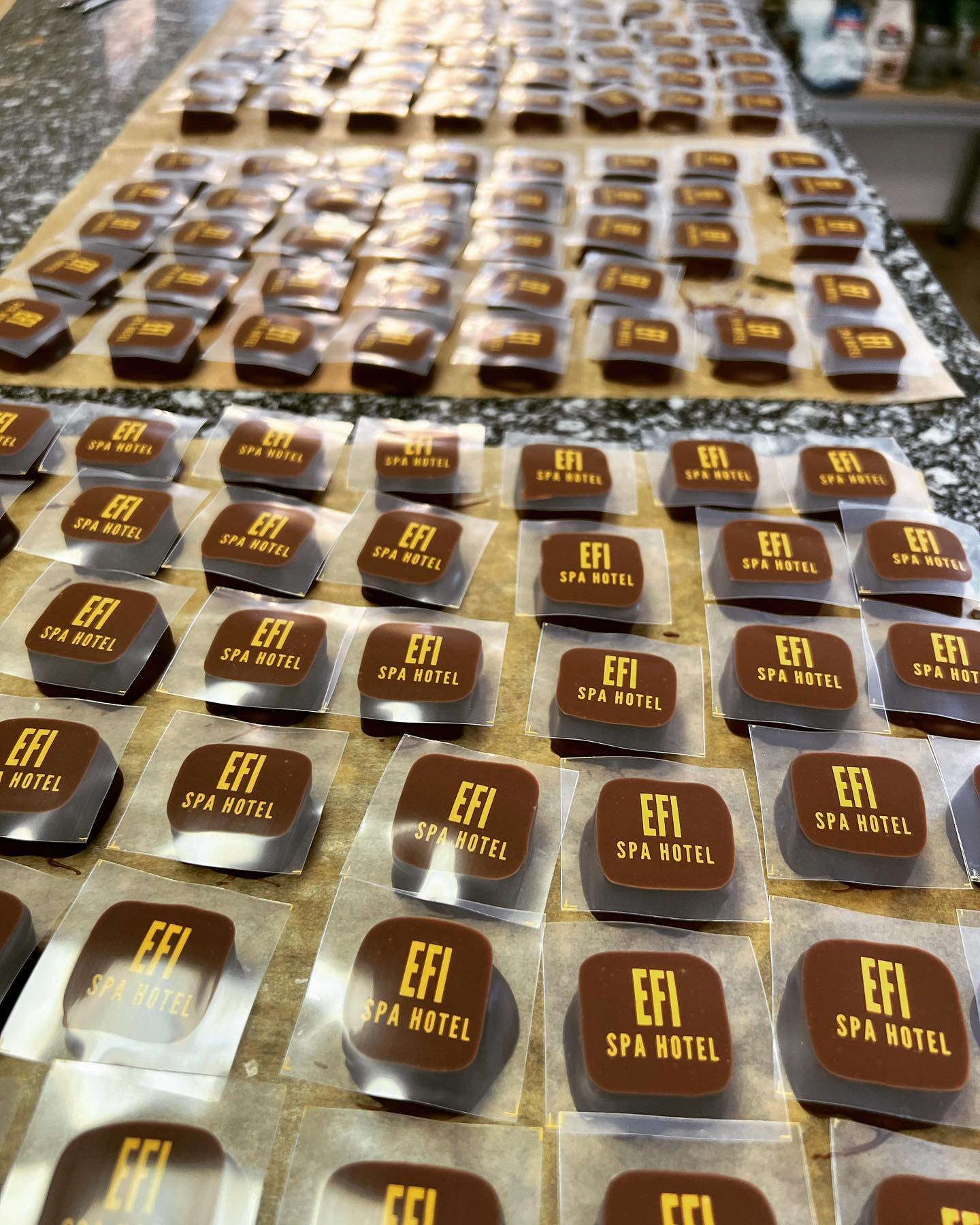 Vyrábíme čokoládové lanýže, bonbony a dárkové balíčky na míru – s možností loga vaší firmy, vlastního textu nebo barevného ladění.